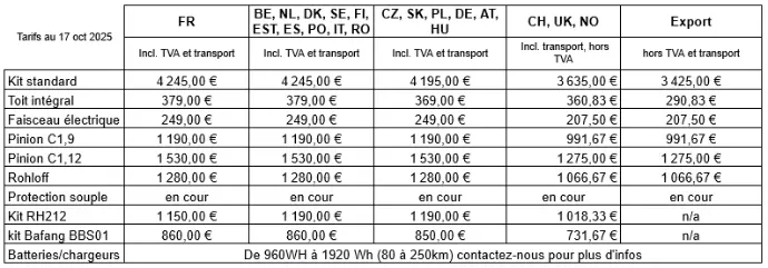 Le kit n'est pas conseillé si la principale motivation est le tarif plus faible.